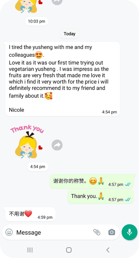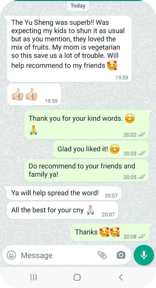 Our Yu Sheng is made with the finest and freshest ingredients sourced from the markets. We offer same-day delivery to ensure it's freshness. and taste, ensuring that you have a wonderful Lou Hei for your joyous celebrations.